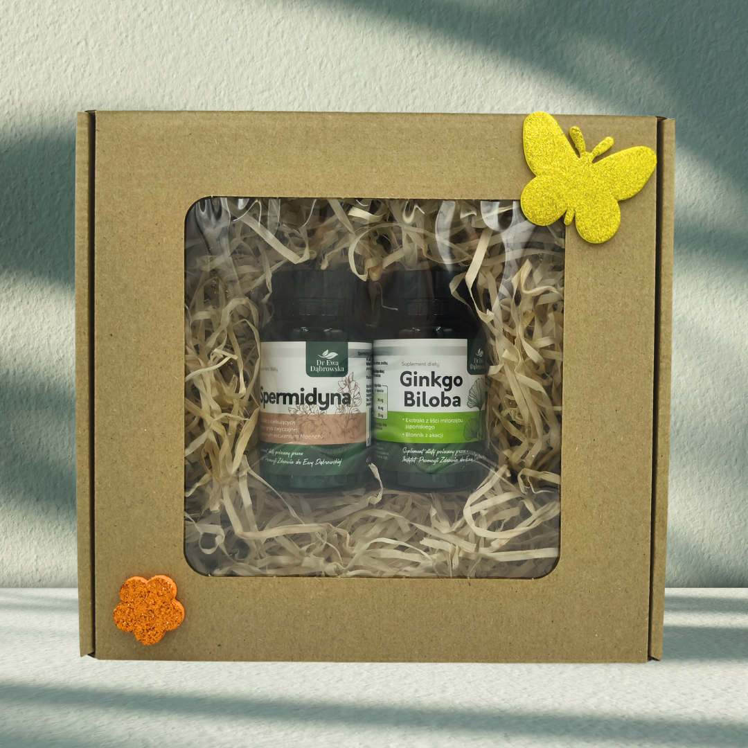 Zestaw zawiera dwa flagowe produkty: Spermidynę oraz Ginkgo Biloba.