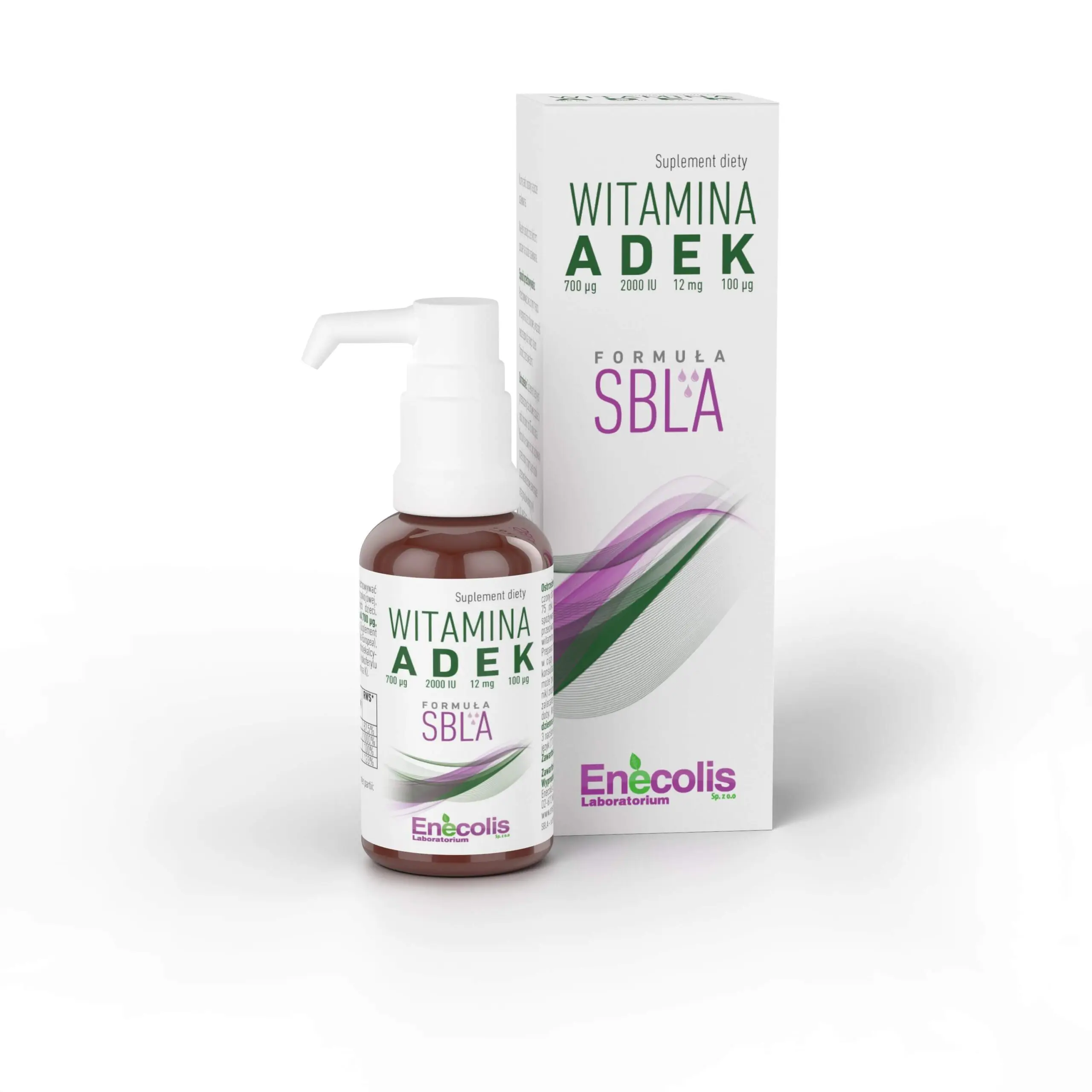 Suplement diety Witamina ADEK zawiera: witaminę A, D3, E i K2mk7 rozpuszczone w oliwie z oliwek (Olea Europea). Dobra rozpuszczalność witamin w tłuszczach, wpływa na wysoką przyswajalność. Preparat ma unikalną formę kropli podjęzykowych, co również zwiększa biodostępność witamin.