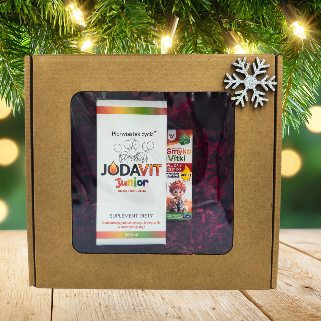 Szukasz praktycznego prezentu dla dziecka? Wybierz Zestaw Mądry Smyk! Jodavit Junior i Wit. D3+K2 SmykoVitki to kompleksowe wsparcie rozwoju mózgu, funkcji poznawczych i zdrowych kości. W efekcie to idealny prezent dla Twojego Mądrego Smyka już od 1. roku życia!